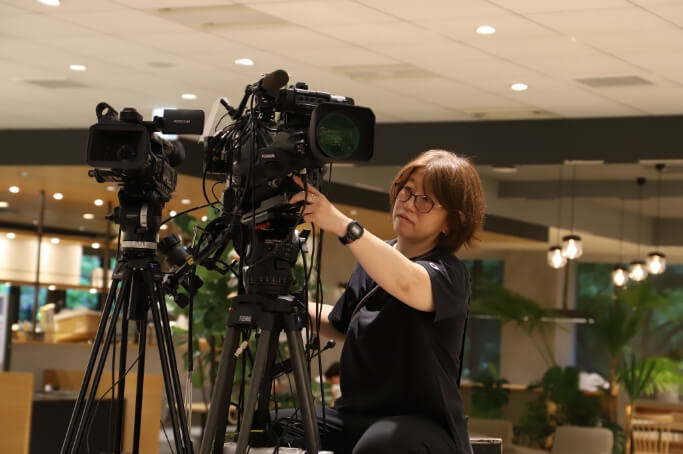 オンラインでは、臨場感を高めるために複数台のカメラを配置。視聴者を飽きさせないカメラワークや映像構成を企画し、リアル会場の空気感や盛り上がりを画面越しにも伝える演出を行った。グランプリ発表前には、期待感を高める映像コンテンツも制作し、式典全体の流れにメリハリを持たせた。