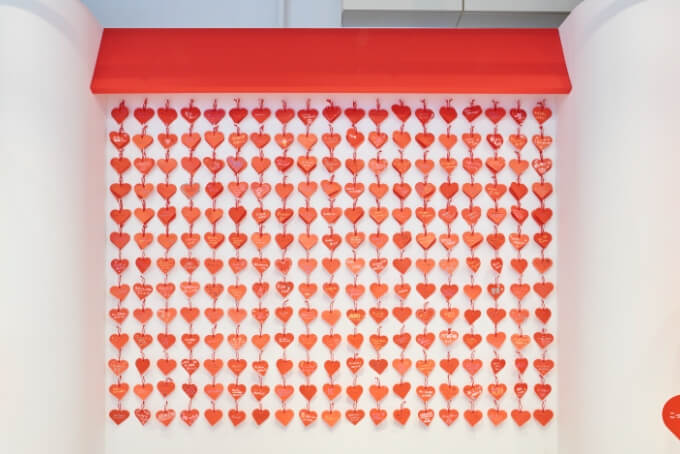 イベント会場は、ハートをモチーフとした思わず立ち寄りたい!と感じさせるKAWAIIデザインを、外装・内装・そしてコンテンツにいたるまで徹底的に追求し、こだわり抜いた。