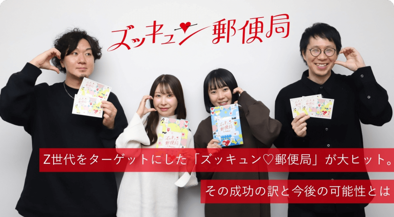 そこで、手紙・荷物を通して想いを届けることができるという郵便局ならではの価値を、ドキドキする“体験”へと昇華。若年層にスマホではできない、想いを届ける新たな場として認知・好意を抱いてもらうためのイベント「ズッキュン♡郵便局」を2023年8月に期間限定オープン。