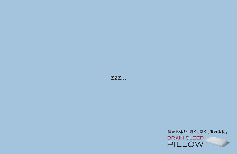 睡眠の質を向上させる枕のプロモーションとして、「脳を休ませる」というコンセプトのもと、情報を極限まで削ぎ落としたシンプルな広告を、車両内中づりやドア横などに展開。